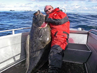 Våran kock visar att han även kan fiska. Hans första kveite blev ett snyggt PB 44,7 Kg (145 cm)